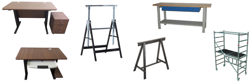 Tréteaux, Echafaudages, établis d’ateliers, Armoires, Tables, chaises...